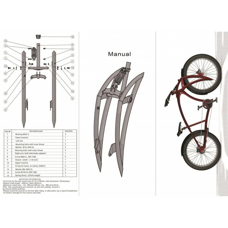 – Cette fourche peut être monté sur d’autres vélos que les vélos MIB, à vous de personnaliser votre vélo.